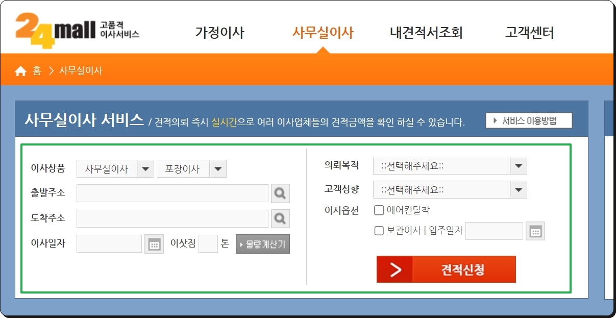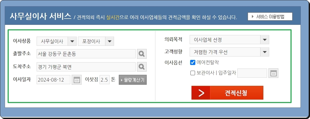 내 상황에 딱 맞는 포장이사 견적비교 진행하기.