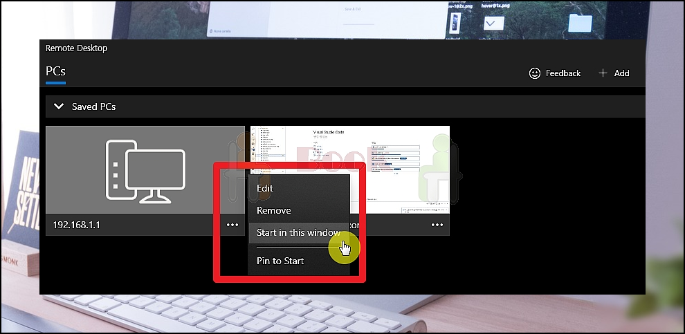 컴퓨터 등록을 완료하였습니다. 등록한 것을 클릭해 보세요. 설정 버튼 클릭 후 "Start in this window" 메뉴를 선택해도 됩니다.