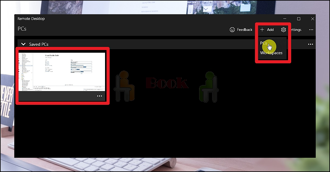 Remote Desktop를 실행하면 저처럼 원격제어를 진행할 컴퓨터를 등록해야 합니다. 우측 상단에 있는 메뉴에서 [Add] 버튼을 누른 후 [PCs] 메뉴를 선택하면 됩니다. 해당 프로그램을 통해 한 번만 등록하면 됩니다. 미리 등록해 놓은 것을 선택하기만 하면 돼죠.