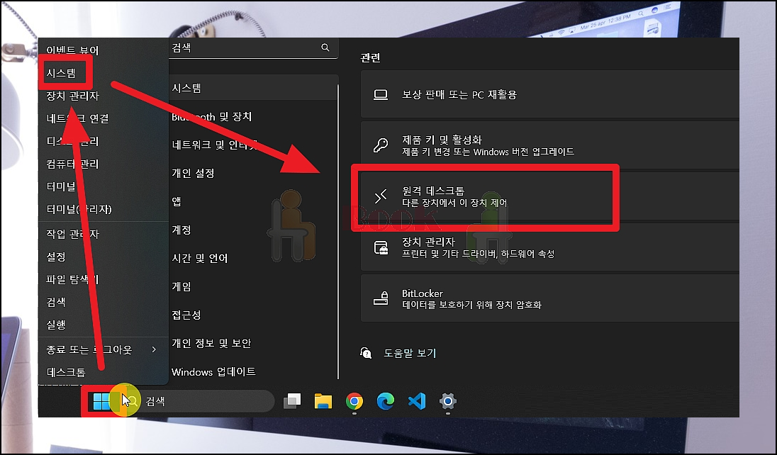 원격제어 프로그램을 사용하기에 앞서 상대측 컴퓨터에서 몇 가지 설정을 해주어야 할 것이 있습니다. 제어판의 시스템 페이지를 열어보세요. 그럼 관련 카테고리 부분에 "원격 데스크톱" 항목이 있습니다. 해당 항목을 선택합니다.