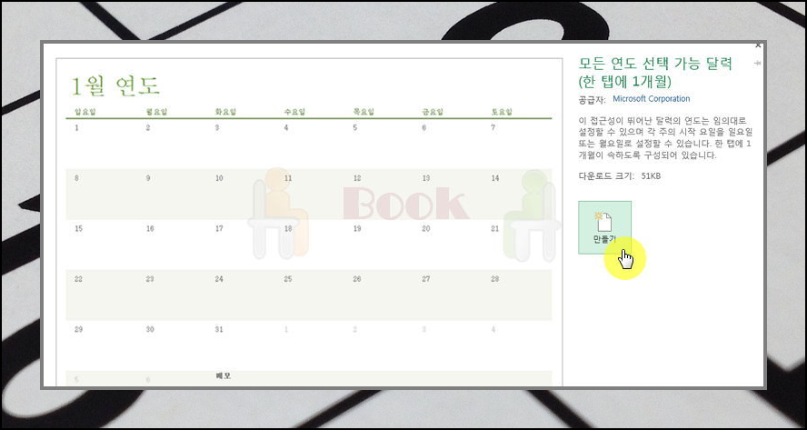 2024년 전용 달력도 좋지만, 매년마다 따로 다운로드 할 필요 없는 양식이 좋겠죠? 그런 의미에서 저는 이 양식을 이용해보겠습니다. 선택한 후에 '만들기' 버튼을 클릭해주세요.