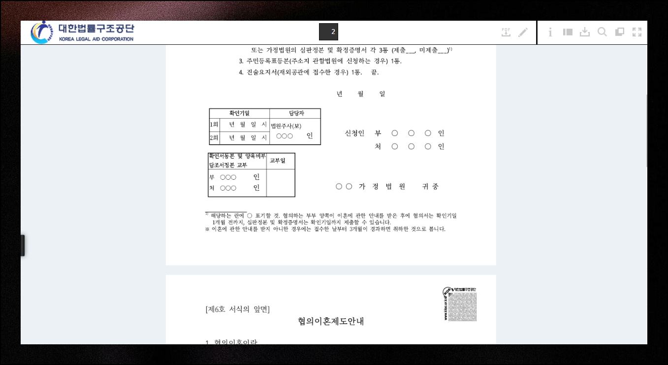 많은 분들이 인터넷에서 최신 신청서 양식을 찾거나 기타 '이혼서류'에 대해 궁금해 하시더라고요. 아무래도 어느 정도 시간이 흐르면 필요한 문서나 양식이 달라질 수 있습니다. 그러한 것을 감안하여 가장 최신 정보와 자료를 이용하는 것이 좋겠죠. 해당 자료의 경우에는 대한법률구조공단 웹사이트에서 쉽게 구하실 수 있어요. 접속 방법을 자세히 알려드릴 테니 제가 안내해드리는 주소로 들어가 보세요.