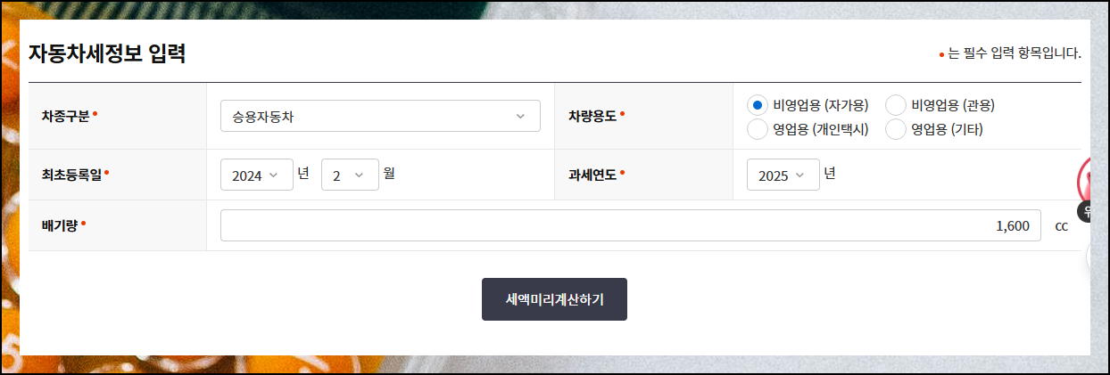 자동차세 계산 방법, 2025년 기준 자동으로 결과보기
