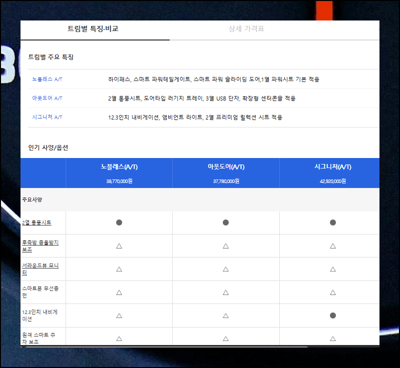 웹에서 미리 가격표를 살펴보면 실제 딜러와 상담할 때 더 효율적으로 진행할 수 있어 시간 절약에 도움이 됩니다.