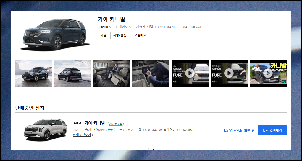 다나와 자동차 웹사이트에서는 별도 가입 절차 없이 카니발 9인승 신차 정보를 즉시 확인할 수 있어요. 직관적인 화면 구성으로 자동차에 익숙하지 않은 분들도 쉽게 이용 가능합니다.