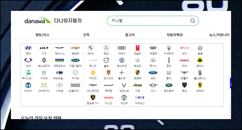 사이트 상단 검색창에 "카니발"을 입력하면 필요한 정보를 신속하게 찾을 수 있어요.