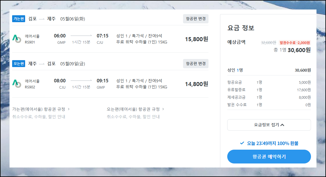 같은 국내선 티켓이라도 혜택이나 수수료가 다를 수 있으니 요금을 꼼꼼히 비교하세요. 특가 항공권은 빨리 매진될 수 있으니 서두르세요.