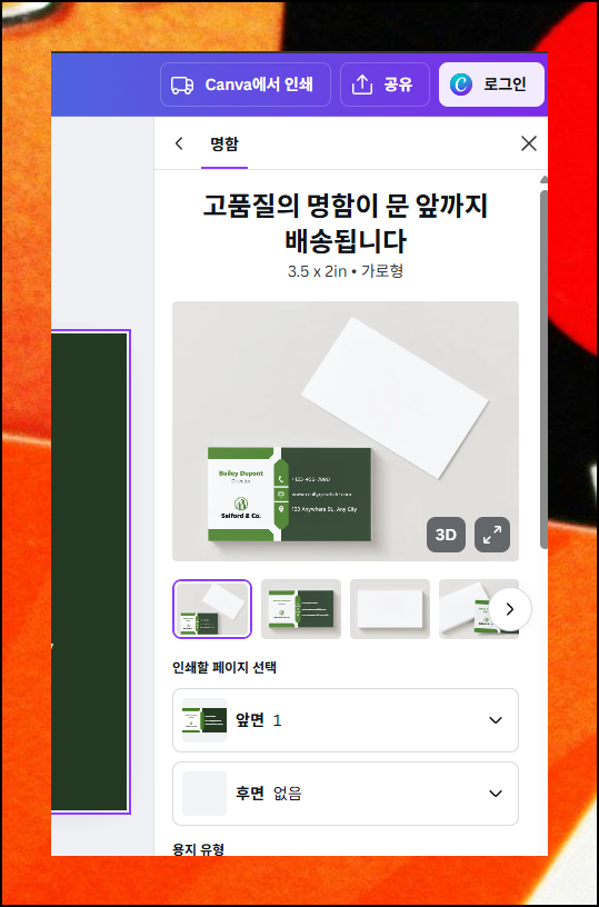 앞뒤 양면 인쇄도 가능하고, 고급 용지나 무광 또는 유광 마감과 같은 특별한 옵션도 선택할 수 있어요.