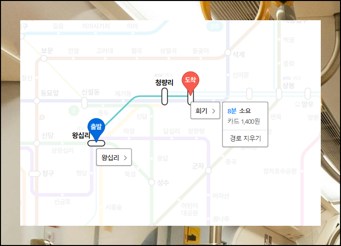 가장 효율적인 이동경로가 즉시 화면에 표시됩니다. 전체 이동시간은 물론이고 거쳐갈 역 수, 갈아타야 할 횟수와 환승 장소까지 정밀하게 안내를 받을 수 있어요.