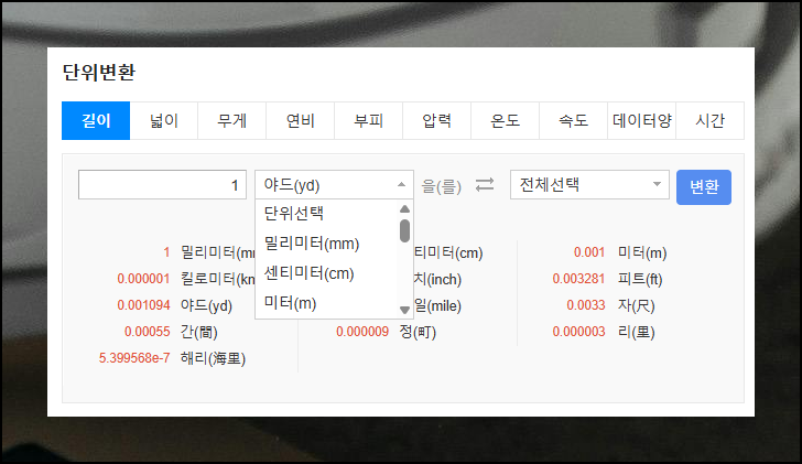 실제 계산에 도움이 되는 편리한 웹 도구를 활용해보겠습니다. 포털 사이트에서 "단위 환산"이라고 검색하면 전용 계산기가 바로 나타나요. 이 도구의 가장 큰 장점은 다양성입니다. 거리는 물론이고 넓이, 무게, 연비, 부피까지 폭넓게 지원하거든요.