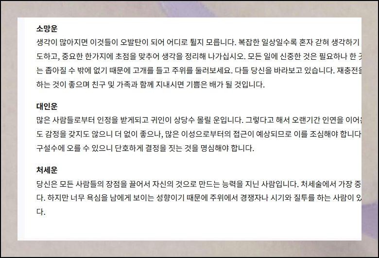 | 무료 오행사주풀이 해석 제대로보기 (0) | 2025.06.06 |