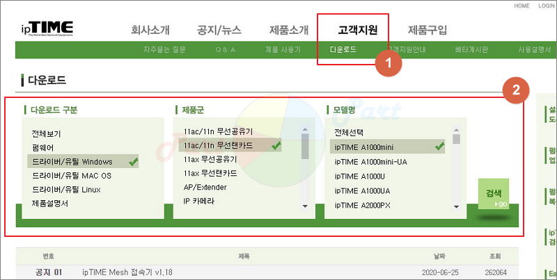 이렇게 제조사 사이트의 자료실 페이지를 통해 드라이버 설치 파일을 다운로드 받을 수 있어요.