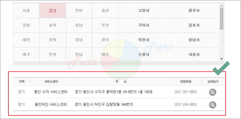 직접 서비스센터에 방문을 해야 하는 경우라면 방문 가능한 지역을 선택해 보세요.