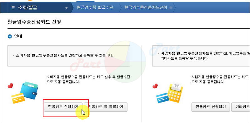 해당 홈페이지를 통해 국세청에서 보내주는 전용카드를 신청해 보세요.