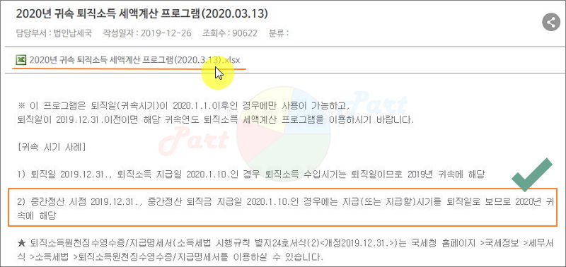 ▲ 2020년 귀속 퇴직소득 세액계산 프로그램 클릭