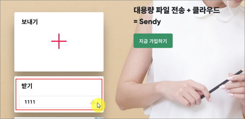 ▼ 샌드애니웨어 사이트에 접속했습니다. 이제부터 백업한 파일을 받는 방법을 알려드리겠습니다. 좌측에 보면 보내기와 받기 영역이 있습니다. 받기 영역에 있는 입력란에 스마트폰 화면에 나타난 숫자키를 입력합니다. 6자리 숫자키를 입력했다면 다운로드 버튼을 클릭합니다.