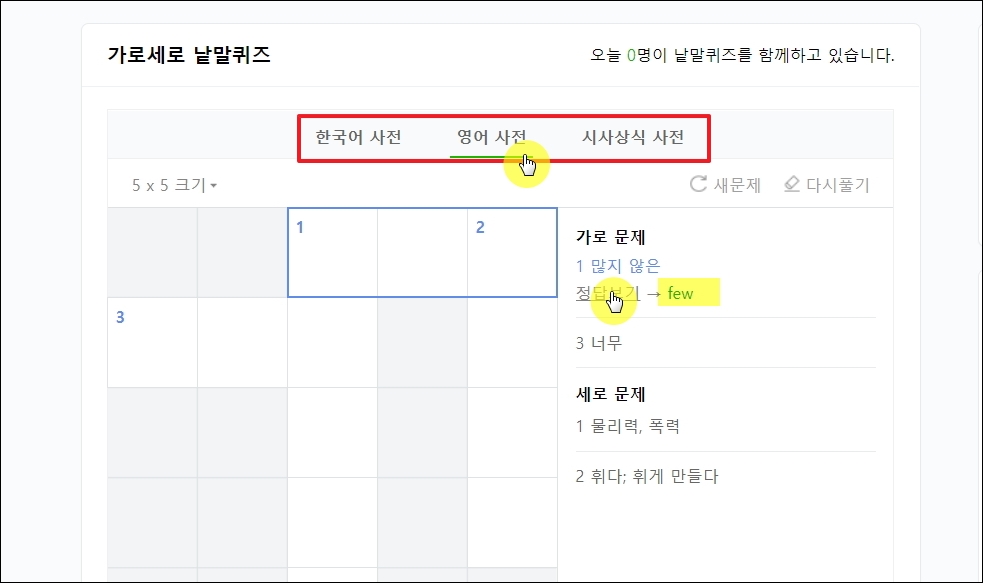 가로세로 퀴즈 재미있게 풀기 (한국어, 영어)