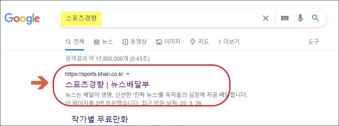 ▼두 번째로 가로세로 퀴즈를 풀 수 있는 사이트를 알려드리겠습니다. 스포츠경향 사이트입니다.