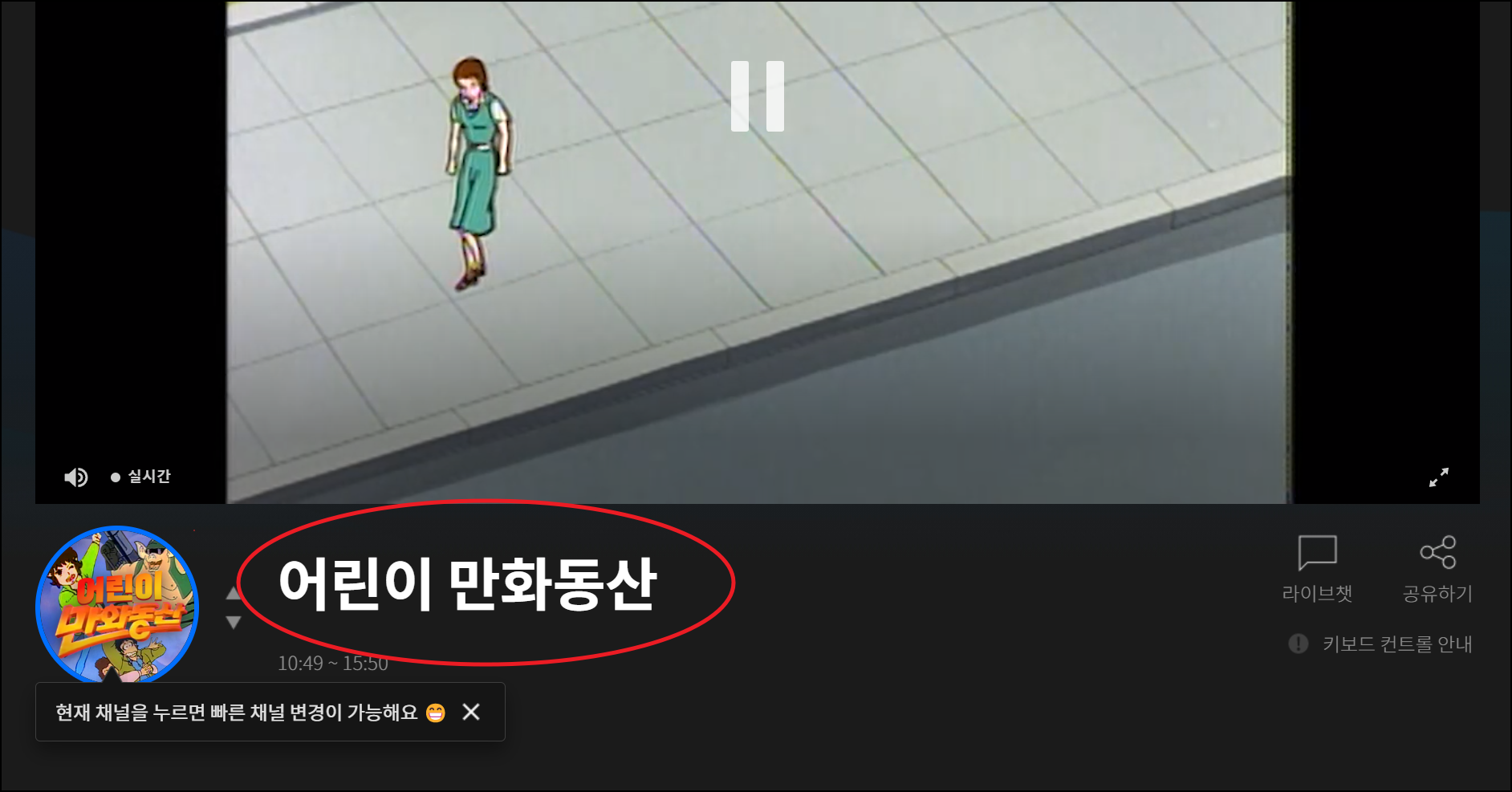 개인적으로 어린이 만화동산 채널을 좋아하는데요. 해당 채널 또한 온에어 서비스를 통해 감상할 수 있습니다. 옛시절에 우리에게 큰 감동과 재미를 주었던 여러 가지 국산 만화영화를 만나볼 수 있어요. 까치, 하니, 날아라 슈퍼보드 등 정말 정겹네요.