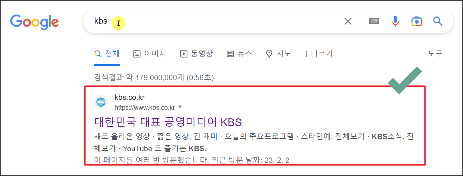 그럼 kbs2 온에어 서비스를 이용하기 위해 kbs 공식 홈페이지에 접속해 보겠습니다. 컴퓨터로 지상파 티비를 보고 싶을 때 이용하는 곳이에요.