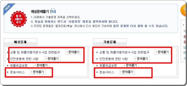 버스운전 자격시험 기출문제를 풀려고 하는데 화물운송 자격시험을 선택해서 의아해 하시는 분들이 계실 텐데요. 일단 새롭게 올린 페이지에서 기출문제 풀기 버튼을 눌러 주세요.